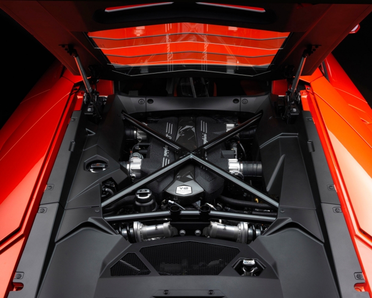 Под капотом, который располагается сзади, обосновался новейший двигатель V12, развивающий по предварительной оценке 700 л.с. Его конструкция построена на 6,5-литровом моторе предыдущего поколения, однако для Aventador она заметно переработана. Инженеры смогли увеличить мощность силовой установки, одновременно с этим снизив ее вес.