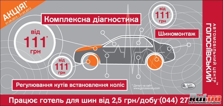 С 1 апреля 2013 года в Автомобильном центре Голосеевский стартовала Весенняя сервисная акция «С НАМИ ВЫГОДНО ВСЕГДА». Акционные условия действует как для владельцев автомобилей Nissan, Renault, KIA, Chevrolet , ЗАЗ, так и для владельцев автомобилей других марок.