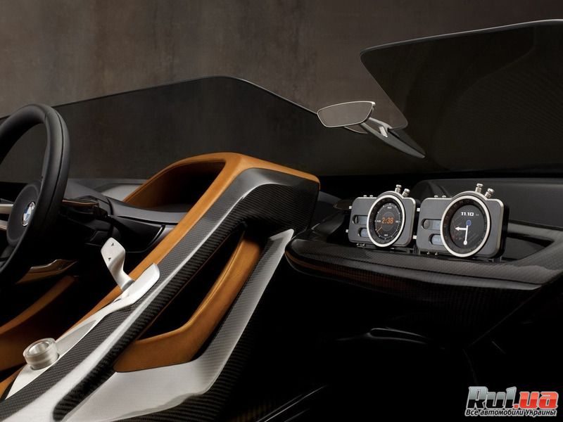 Концепт получился чрезвычайно легким – всего 780 кг, благодаря широчайшему использованию пластика, армированного карбоном. По мнению баварцев, такие материалы легче и жестче, чем алюминий, который использовался в основном в отделке салона. Помимо него, интерьер концепта облагорожен с помощью кожи и карбона. Вместо бортовых приборов используются два iPhone, водителя и пассажира – для них предусмотрены специальные держатели. Будучи установленными в переднюю панель, гаджеты превращаются в дисплеи, выводящие на свои экраны массу дополнительной информации – например, показания навигационной системы или секундомера. Эта система получила название Tripmaster.