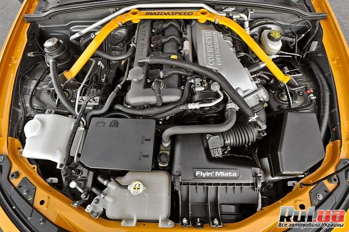 Новый вариант спайдера с жестким верхом переработан «с нуля», его внешность и управление стало более агрессивным. Кроме того вместо прошлогоднего решения серый слюдяной плюс оранжевые окантовки-акценты, теперь у авто оранжево-черно-матовое решение. Диски остались прежними - 16-ти дюймовые,со сдвоенными спицами Enkei RPF1, «обуты» в шины Toyo Proxes RA-1 245/45ZR16.