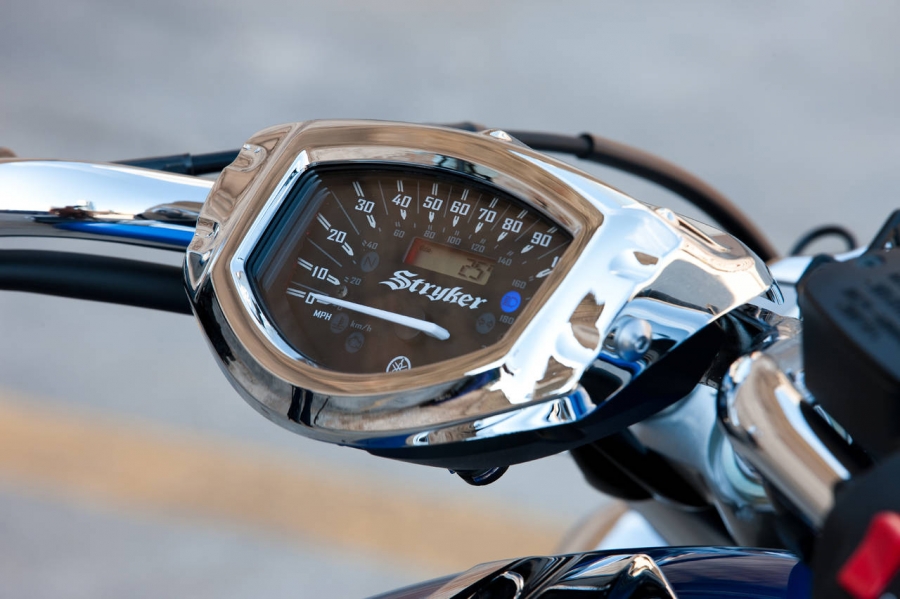 Как и Fury, новый Yamaha Stryker имеет отчетливые линии чоппера с выкинутой вперед вилкой, 21-дюймовым колесом спереди, высотой по седлу всего 670 мм и задней шиной 210 мм. Yamaha пошли дальше и сделали стальные крылья (тяжелей, чем пластик, но эффектней). Мотоцикл выпускаться в трех цветах: черном (raven black), синем (impact blue) и красном (reddish copper).